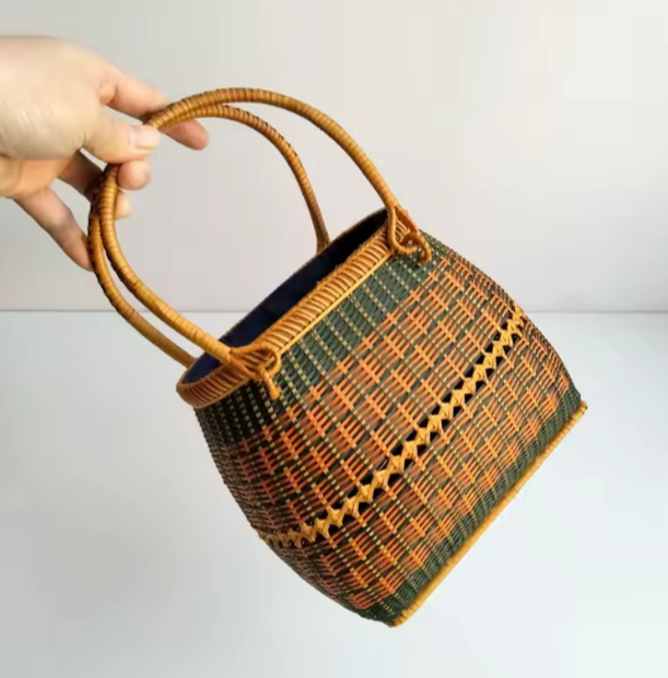 Bolsa boutique de bambu e tecido.