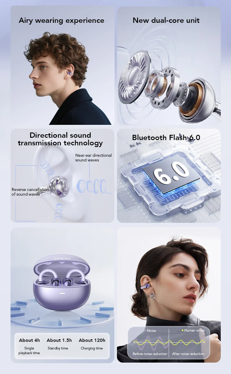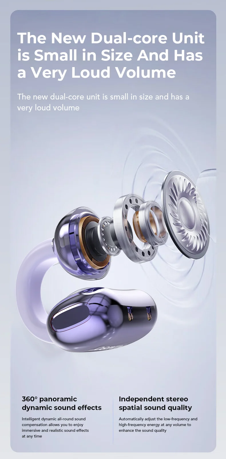Chamadas de alta definição onde cada frase é clara... Oferecendo graves profundos e agudos nítidos em qualquer volume. Projetado para conforto de ouvido aberto, desfrute de som envolvente sem comprometer a consciência - perfeito para treinos, deslocamentos ou aventuras cotidianas. Aumente a energia, sinta cada batida.