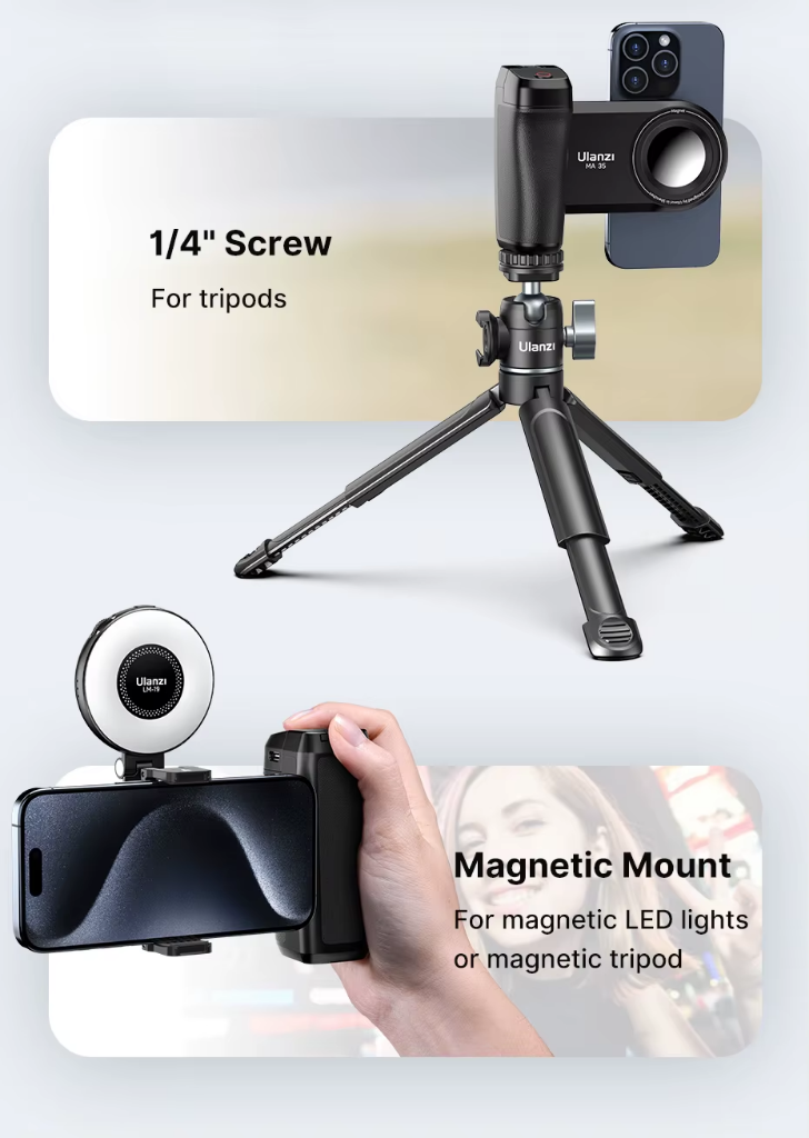 Ponte a lacuna no desempenho da fotografia. O punho da câmera MA35 transforma seu telefone em uma câmera de nível profissional que está sempre com você.