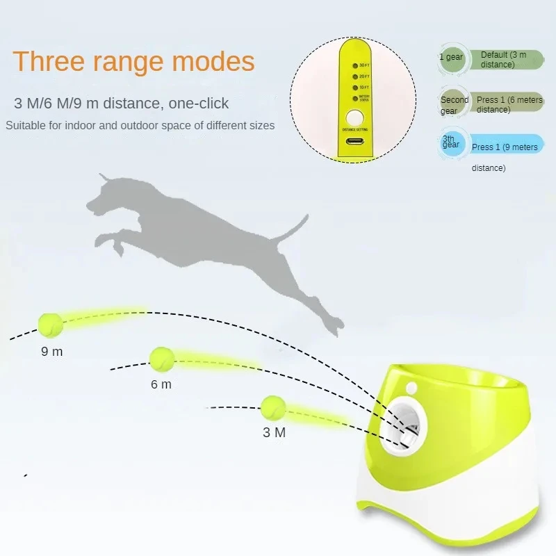 Depois de ligar, pressione vários interruptores de alimentação respectivamente e selecione uma distância de lançamento de 3 metros/6 metros/9 metros.