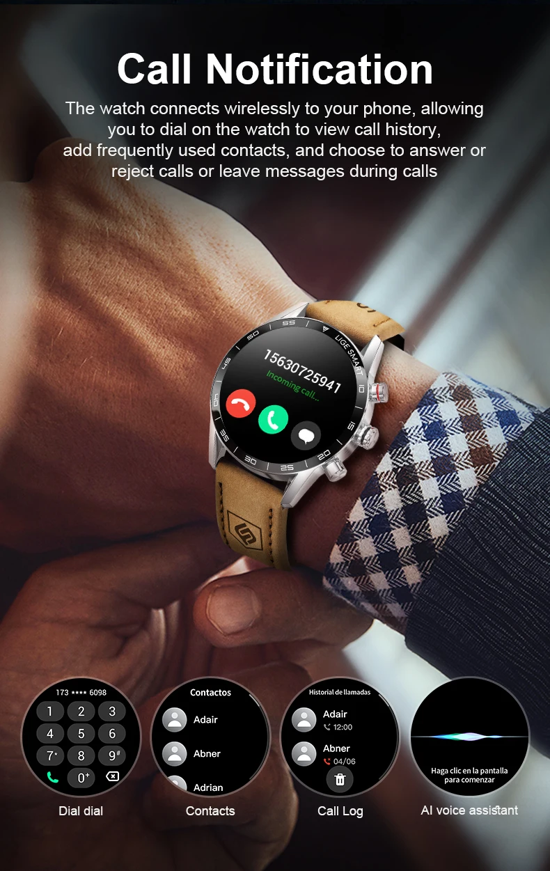 • Estilo e funcionalidade: Com sua forma redonda e estilo elegante, este relógio inteligente não é apenas um acessório de tecnologia, mas também uma peça elegante de joalheria.