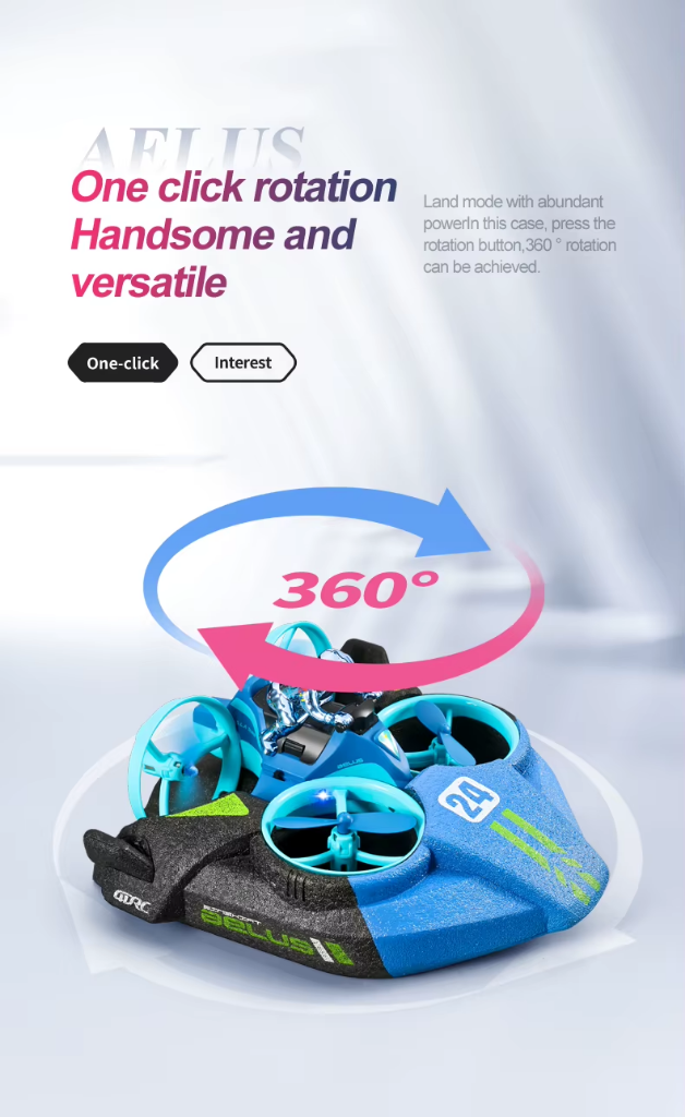 Jogabilidade completa, fácil de operar, a aeronave e o casco de espuma podem ser combinados livremente para realizar vários jogos marítimos, terrestres e aéreos.A troca dos modos de jogo é simples e fácil de usar e não se limita ao ambiente (interior, exterior, piscina e outras superfícies aquáticas)