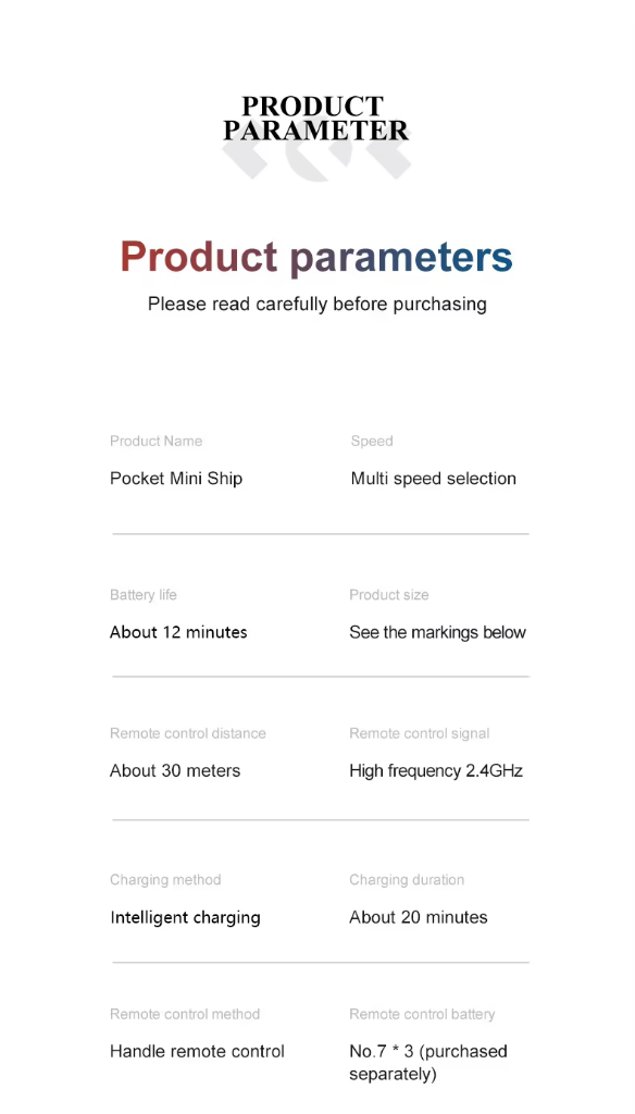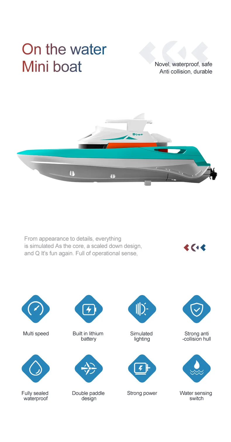 Material: Feito de material resistente, este mini barco de controle remoto 1/32 foi projetado para suportar os rigores do uso regular.