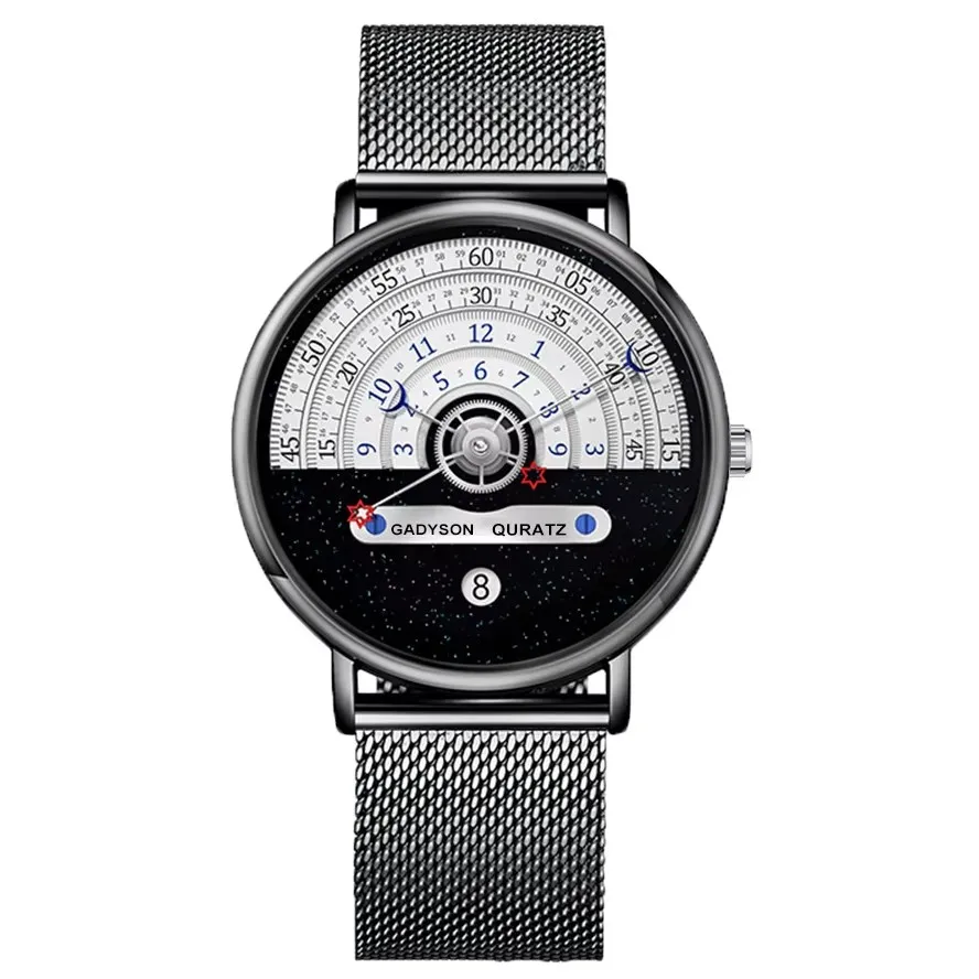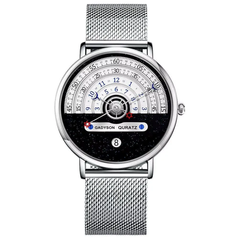 O mostrador redondo elegante e a tela inúmeras combinam moda e função em um relógio de pulso elegante.