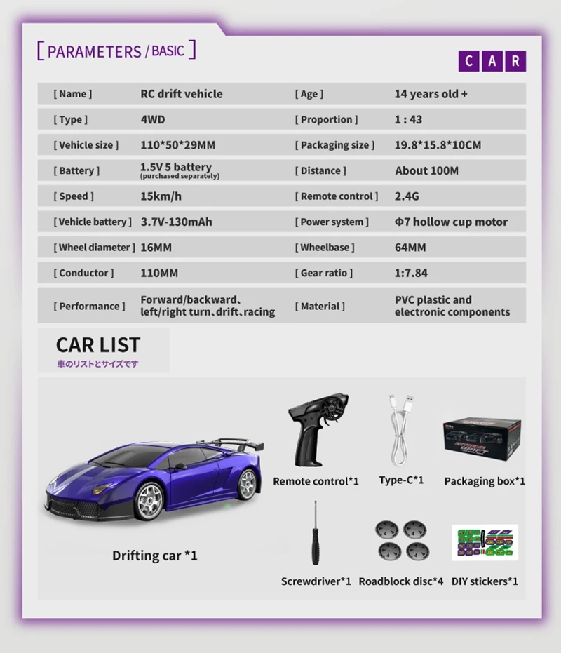 Este brinquedo de carro combina exibição e deriva em um. Você não só pode colocar este modelo rc de drift legal em um expositor como uma exposição encantadora, mas também pode ter uma emocionante aventura de corrida.