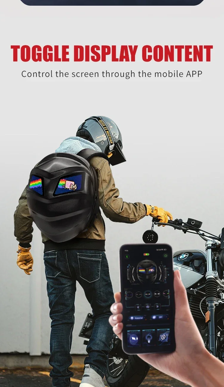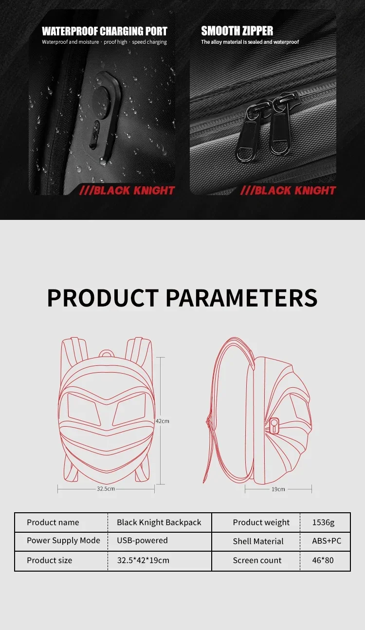 ?DIY ?Modifique o padrão à vontade, deixe a mochila do laptop como desejar.Possui um design elegante e legal que é fácil de detectar na multidão.A mochila inteligente Crelander LED Cool Knight é adequada para uma variedade de cenas, como viajar, caminhar, andar, ir à escola.... ?Multiuso?: O tamanho da mochila LED é de cerca de 13 * 7,5 * 16,5 pol., que tem armazenamento suficiente.Bolso grande com zíper como bolsa para laptop, coloque um tablet; o interior tem uma série de pequenos compartimentos independentes, pode armazenar com eficácia cosméticos, lenços de papel, chaves, livros didáticos, mini ipad, telefones celulares, guarda-chuvas, alguns equipamentos esportivos, etc.... ?Material?A aparência da mochila de cavaleiro inteligente LED compra material impermeável hardcore 3D;a largura traseira usando 1680pvc, tela de matriz de pontos colorida 46*80, texto de suporte, imagens, GIF e outros formatos;tamanho ajustável da alça de ombro;material respirável para as costas ?Presente legal?A mochila LED Knight com tela DIY também é o melhor presente para você ou outras pessoas no Natal, Aniversário, Dia dos Namorados.... ?Como usar?Pesquise no seu celular ou escaneie diretamente o código para baixar o APP, conecte a fonte de alimentação móvel através da porta de dados USB integrada na parte traseira, ligue o Bluetooth e escaneie o código QR para vincular o mochila.Você pode conectar o dispositivo e usá-lo. Observe que, por segurança no transporte, não fornecemos banco de potência. Conheça a mochila KnightUma mochila inteligente projetada para iluminar o seu dia com alguma luz LED Pixel.É uma mochila urbana e para laptop perfeita para homens e mulheres que permite personalizar seu design enquanto você está em trânsito. Desde o mesmo momento em que você adquirir sua mochila LED Pixel, você se torna um geek, um artista, um raver ou tudo isso de uma só vez. Uma mochila para laptop com personalidade para quem atreve ser diferente